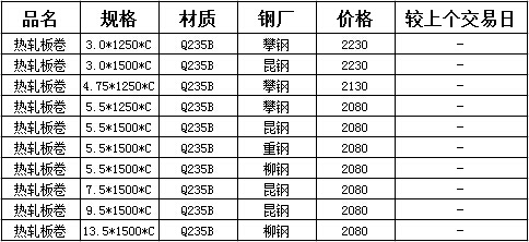 19日昆明市場熱軋板卷價格暫穩觀望,具體如下: