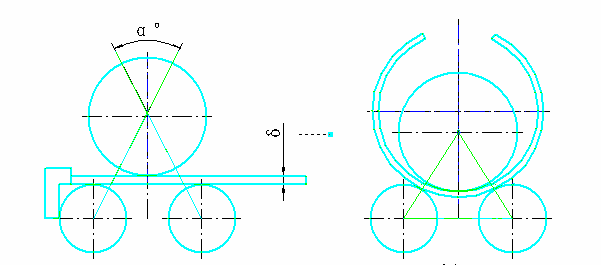 3-1、本機為對稱型彎板機,通過上輥的下壓和上、下輥的對滾來完成筒形工件的卷制。如圖3-1所示