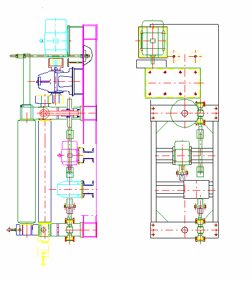 3-4、上輥升降運動的實現,是由輔助電機通過輔助減速機帶動左、右輥子軸承座下面的蝸桿、蝸輪機構運動,使固定在蝸輪上的絲母旋轉,從而使升降絲桿上下移動來完成的。如圖(3-4)